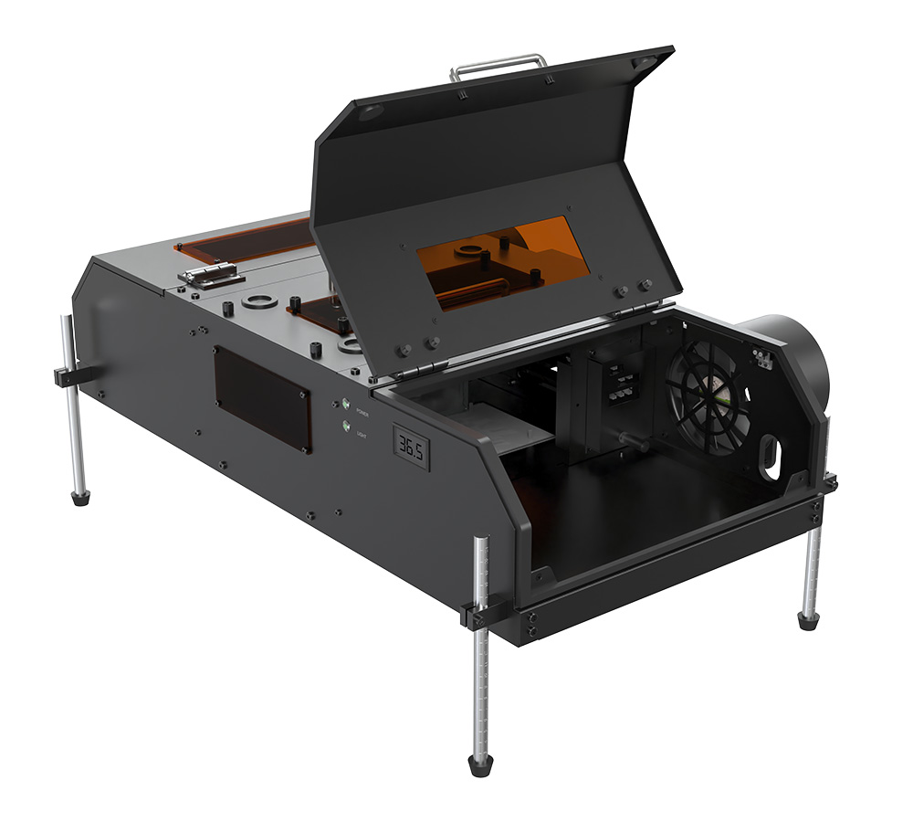 Safety interlocks automatically pause PR300 lamps when the lid is opened